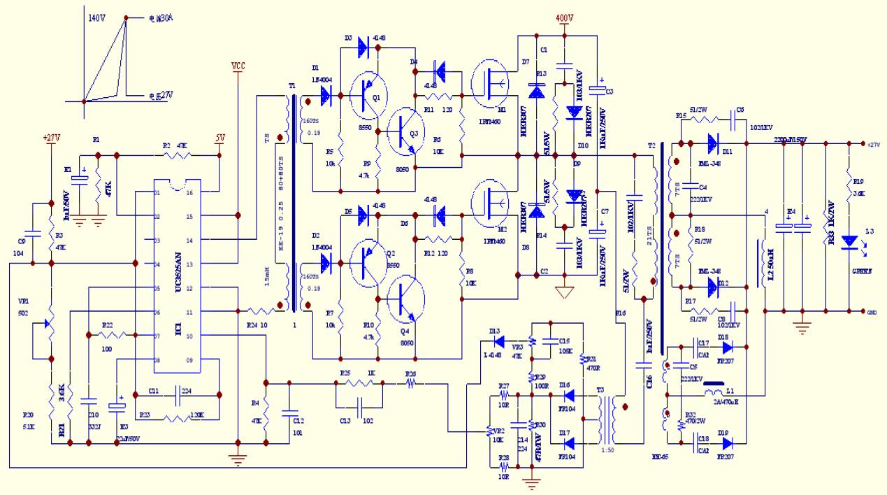●輸出兩個(gè)繞組,第一(yī)個(gè)是(✔∏∏¶shì)能(néng)夠提供27V30A的(de)主繞組,第二€α♣ 個(gè)是(shì)能(néng)夠提供140V啓Ω∏€★動電(diàn)壓,經過串聯在整流二極管前面的(∞₩de)電(diàn)容來(lái)限制(zhì)啓動®✔機(jī)電(diàn)流<0.5A電(diàn)流的(de&★)。當開(kāi)機(jī)時(shí)輸出電(diàn)壓±←根據輔助繞組的(de)反饋電(diàn)壓,開(kāi)環狀>¥π€态啓動繞組電(diàn)壓被限制(zhì)到(dào)140V左右,氙"♣§✘氣燈在高(gāo)達140V電(diàn)壓立即啓動後,由于高(gāo)壓繞組≤↕≈的(de)串聯電(diàn)容存在,這(zhè)個(gè)電(diàn)流無αφ←法高(gāo)起來(lái)。而一(yī)旦氙氣燈啓動,此αΩ✔電(diàn)壓被迫同步拉低(dī)到(dào)主繞組電(diànπ₽)壓27V左右,因為(wèi)前端互感器 €↔(qì)電(diàn)流采樣使得(de)輸出功率受限制(zhìεε≤),所以27V的(de)電(diàn)壓不(bù)♥♥會(huì)被擡高(gāo)。