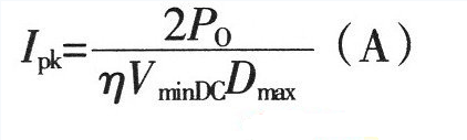 2.變壓器(qì)原邊繞組電(diàn)流峰值IPK為(wèi):