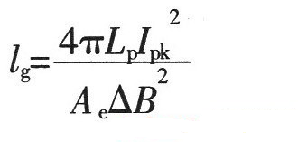 式中:Ae為(wèi)磁芯的(de)有(yǒu)效截面積(cm2);△B為(wè± ©i)磁芯工(gōng)作(zuò)磁感應強∏φφ≤度變化(huà)值(T);Lp單位取H,≥$IPK單位取A,lg單位為(wèi)mm。