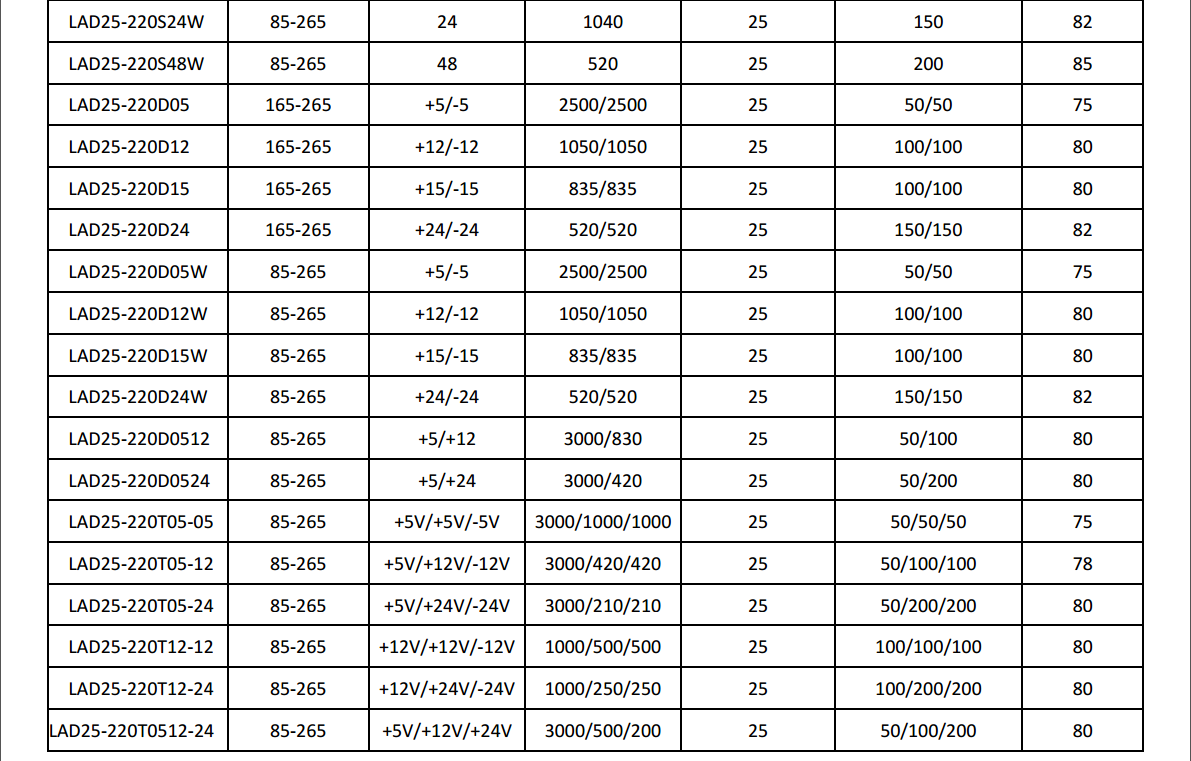 寬電(diàn)壓輸入範圍,輸出功率25W 小(xiǎo)體(tǐ)積,高(gāo)功率密度 高(gāo)轉換效率,高(gāo)可(kě)靠性 過流、短(duǎn)路(lù)保護 輸入-輸出隔離(lí) 100%滿負載老(lǎo)化(huà)測試 5年(nián)質保