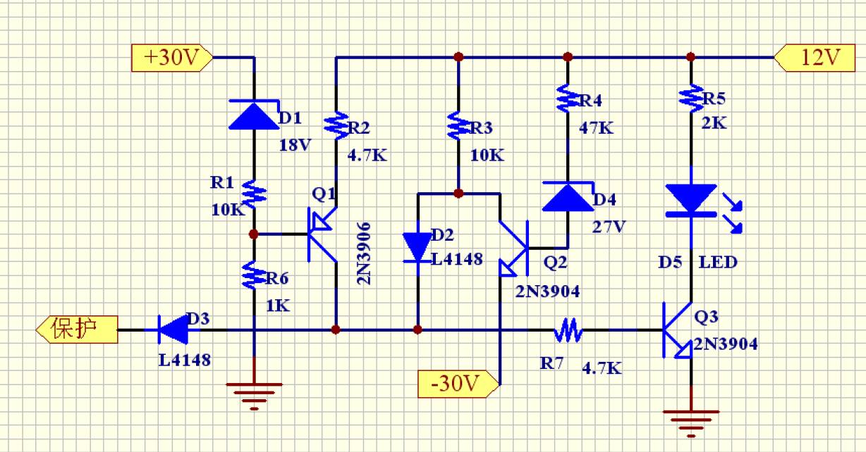 ●Q3是(shì)作(zuò)為(wèi)保護 ε∑™的(de)指示燈驅動電(diàn)路(lù)。