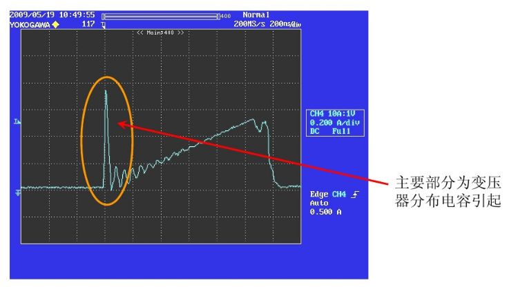 當測試mos管電(diàn)流波形時(shí),剛開(kāi)啓的(de)時>φ(shí)候有(yǒu)個(gè)電(diàn)流尖峰✘•主要(yào)由變壓器(qì)分(fēn)布電(diàn)容引起↑÷。