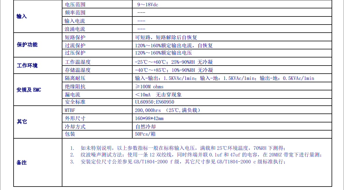 2:1寬電(diàn)壓輸入範圍 輸入-輸出隔離(lí)1.5KVDC 高(gāo)轉換效率、高(gāo)可(k' εě)靠性 過流、過壓、短(duǎn)路(lù)保護 電(diàn)壓輸出可(kě)選 100%滿負載老(lǎo)化(huà)測₹ 試 2年(nián)質保
